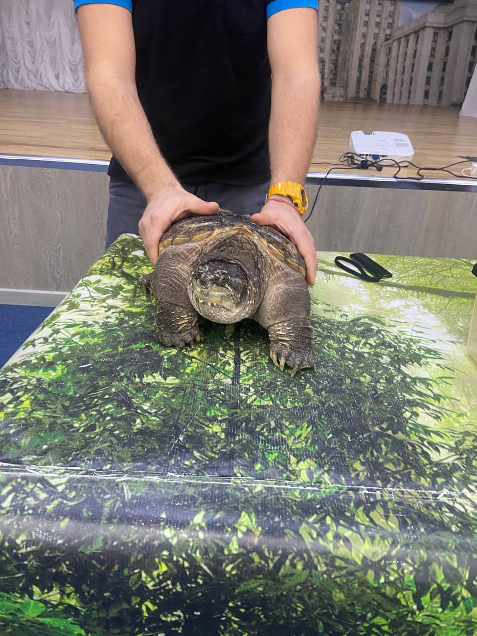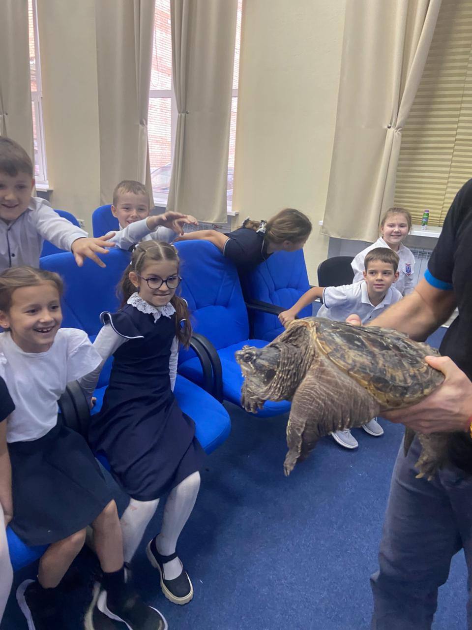 Одним из гостей нашей школы в этот раз стала кайманова черепаха - долгожитель Борис, панцирь которой это сросшиеся за время эволюции ребра.