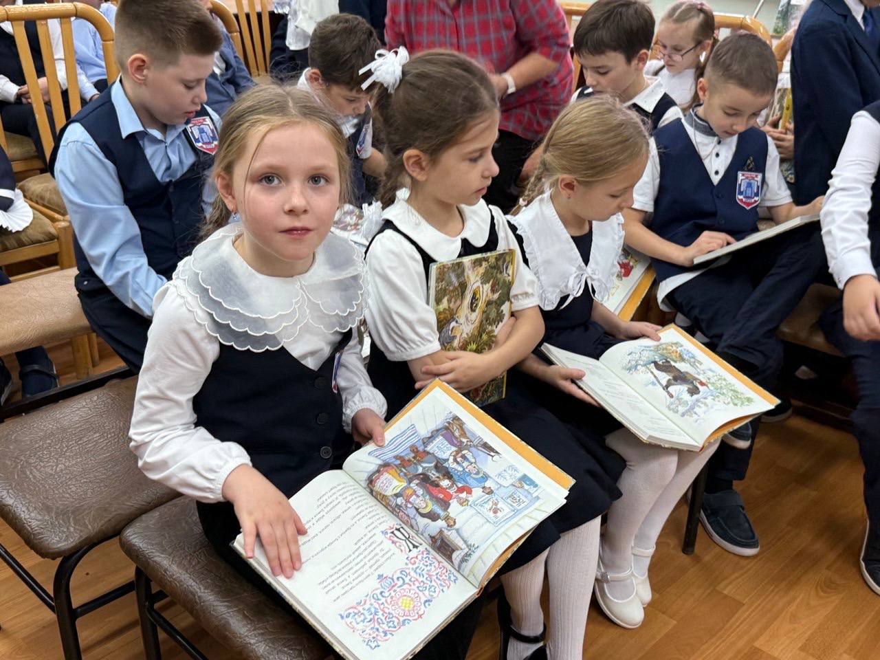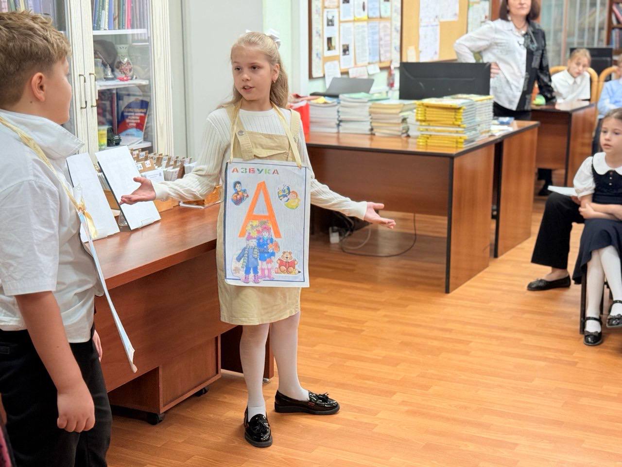Стоит отметить, что в этом году наши первоклашки проявляют особую активность. Они уже самостоятельно берут книги в библиотеке и не раз выступали на большой школьной сцене.