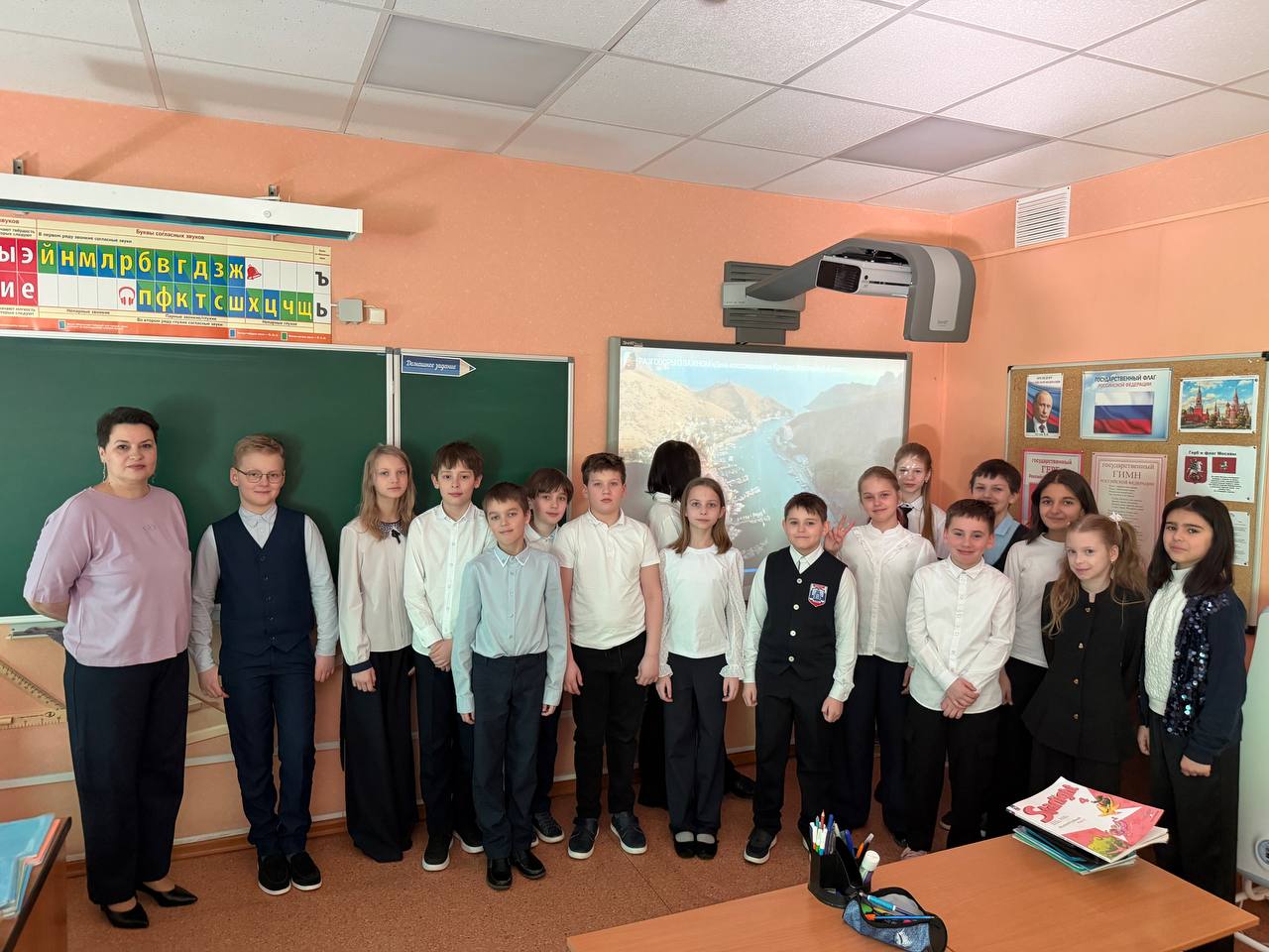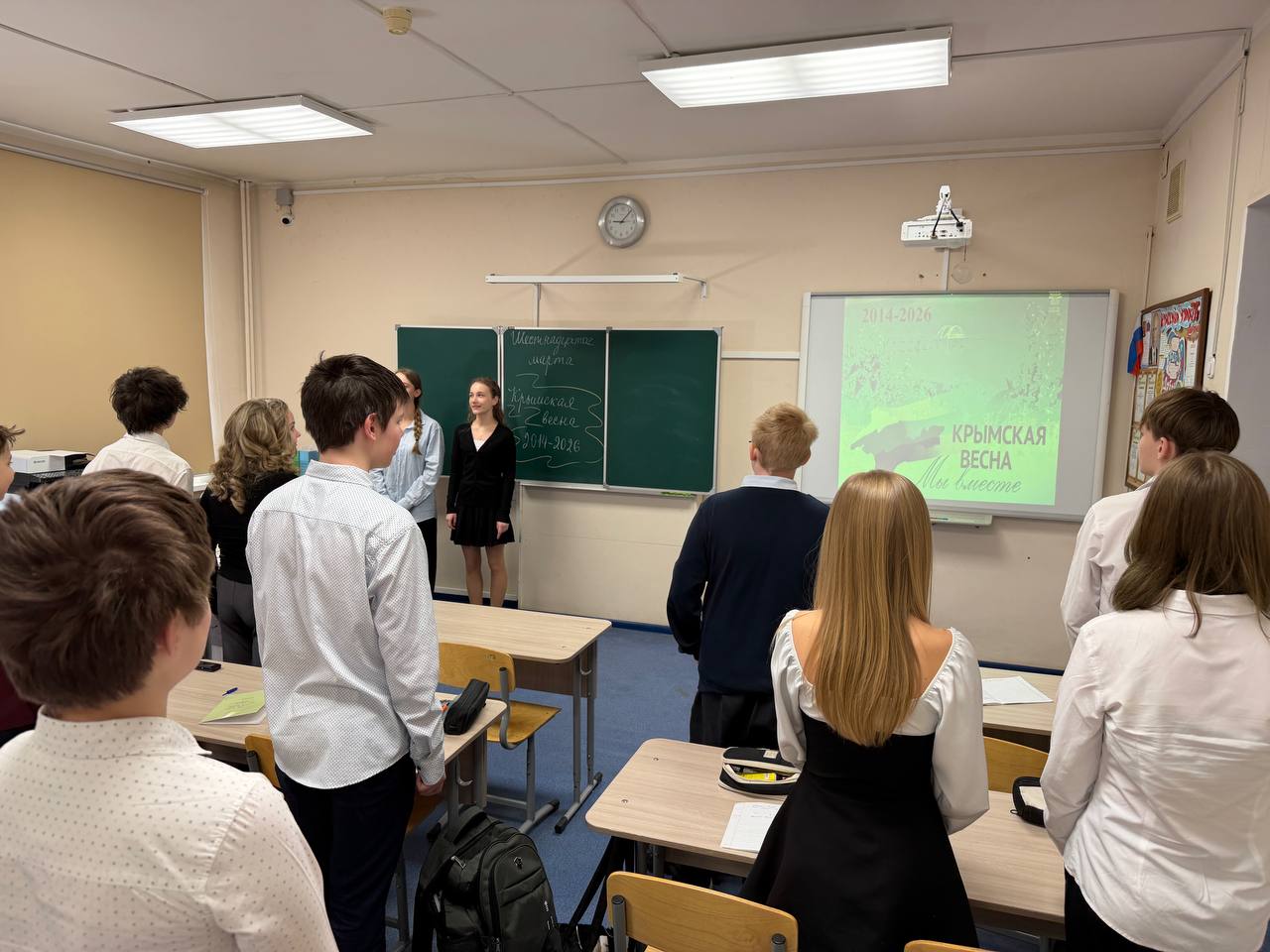 Для учеников разных классов были организованы познавательные видеопрезентации, рассказывающие об истории полуострова, его уникальной природе и культурном наследии, а также о значении события 2014 года, которое вошло в историю как «Крымская весна». Ребята с интересом погрузились в тему, узнали много новых фактов о Крыме как о неотъемлемой части нашей великой страны.