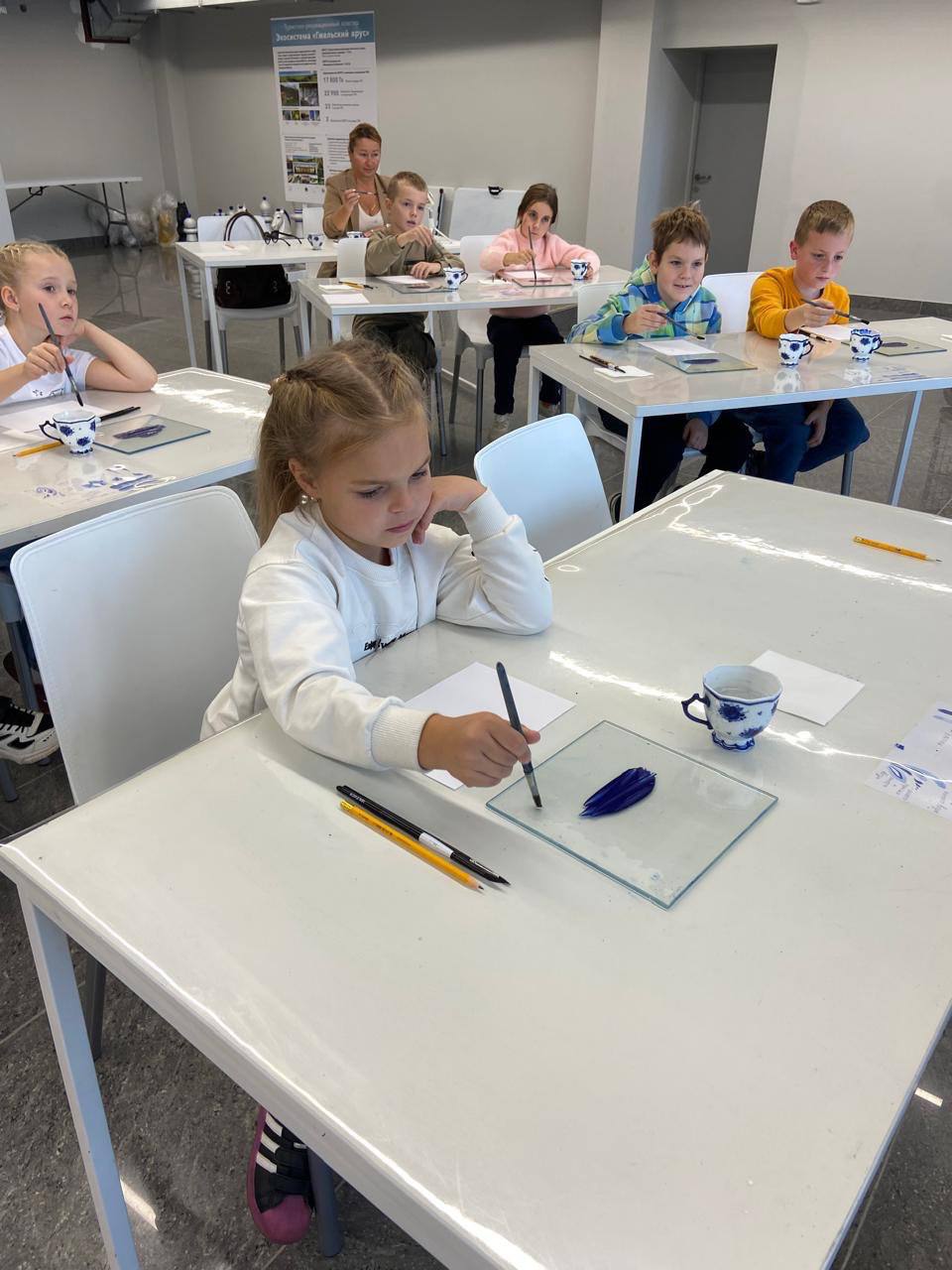 Ребята познакомились с одним из самых узнаваемых в мире русских народных промыслов, погрузились в процесс создания фарфоровых изделий, открыли тайны экспонатов, представленных на выставке, а также получили возможность почувствовать себя в роли художника, освоить традиционную технику мазковой росписи и применить ее на практике на мастер-классе под руководством опытного живописца.