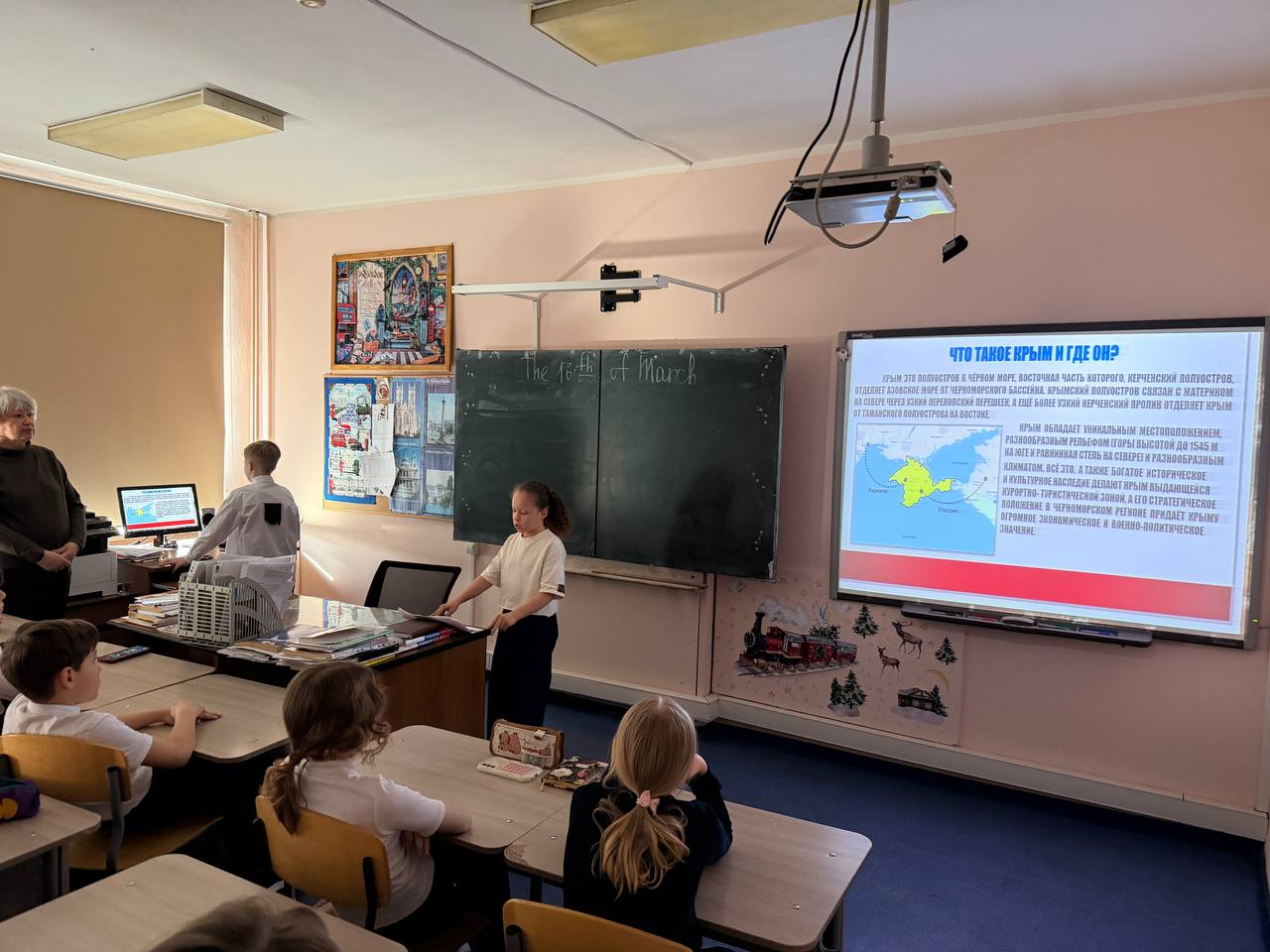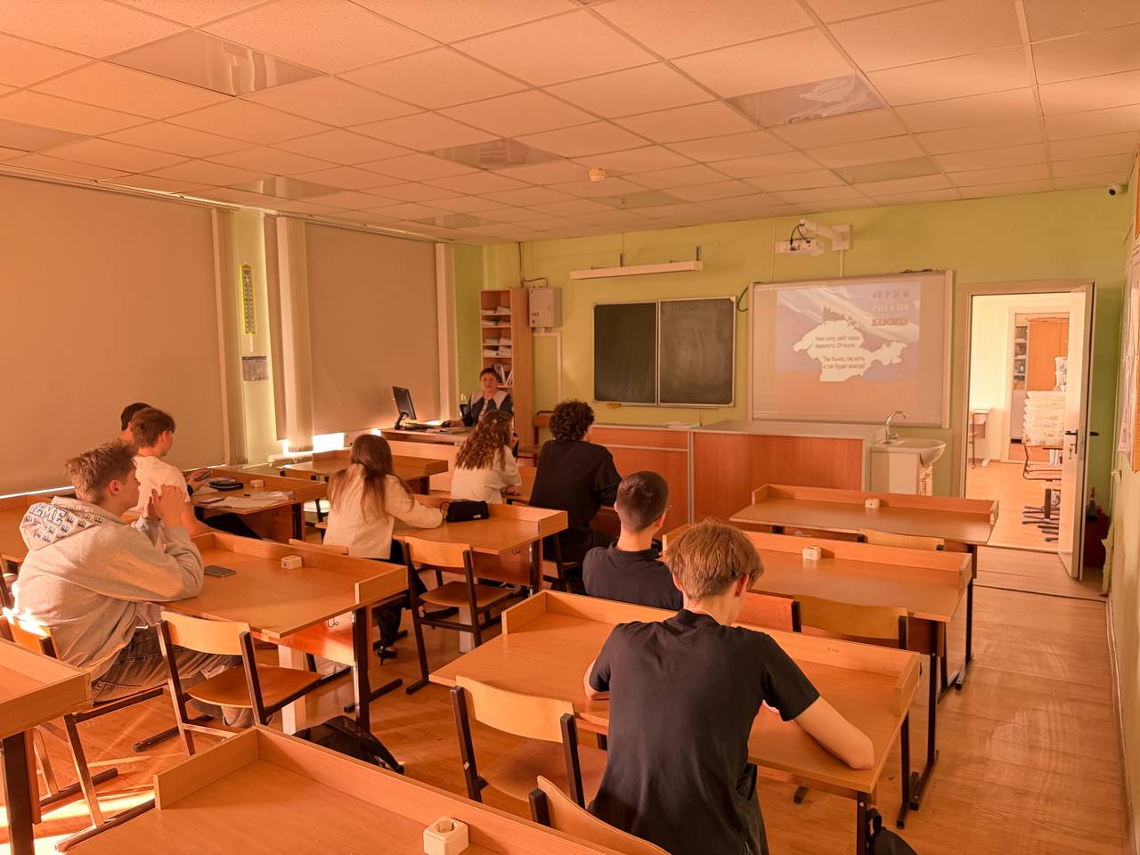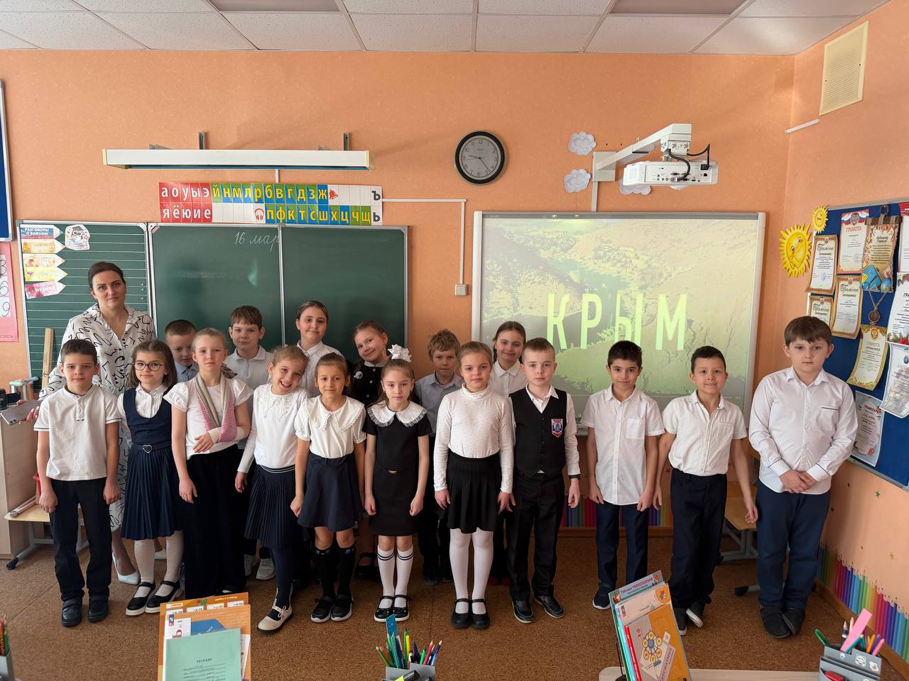 Для учеников разных классов были организованы познавательные видеопрезентации, рассказывающие об истории полуострова, его уникальной природе и культурном наследии, а также о значении события 2014 года, которое вошло в историю как «Крымская весна». Ребята с интересом погрузились в тему, узнали много новых фактов о Крыме как о неотъемлемой части нашей великой страны.