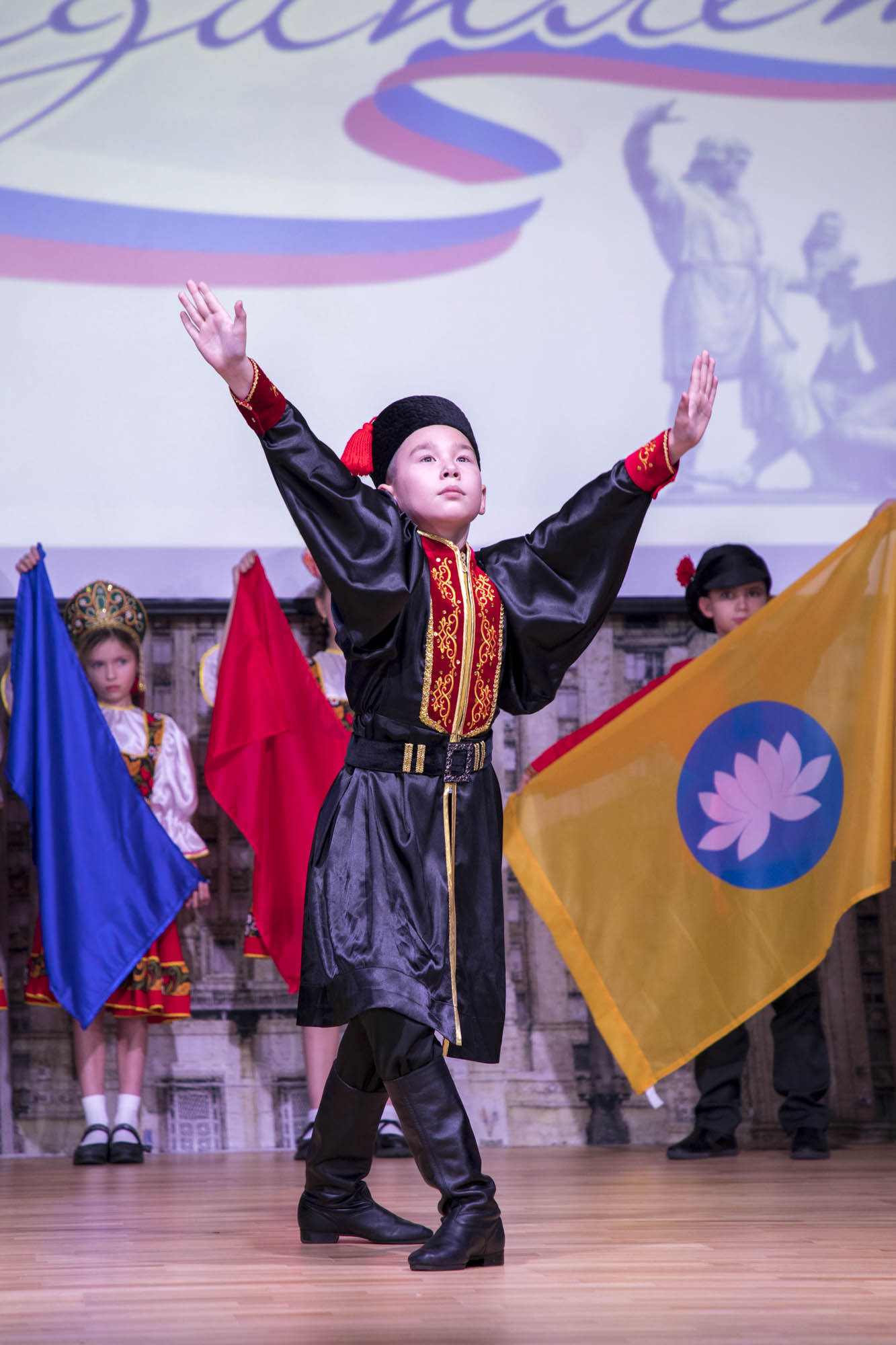 - 2 место — 3 «Б» класс. Особую благодарность за творческий номер жюри выразило Сапожникову Владимиру, который выступил с танцем народов Калмыкии.
