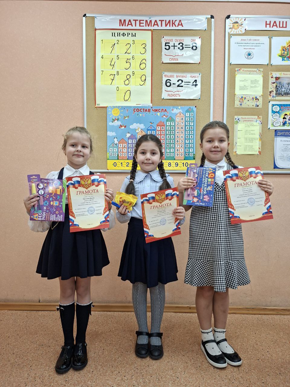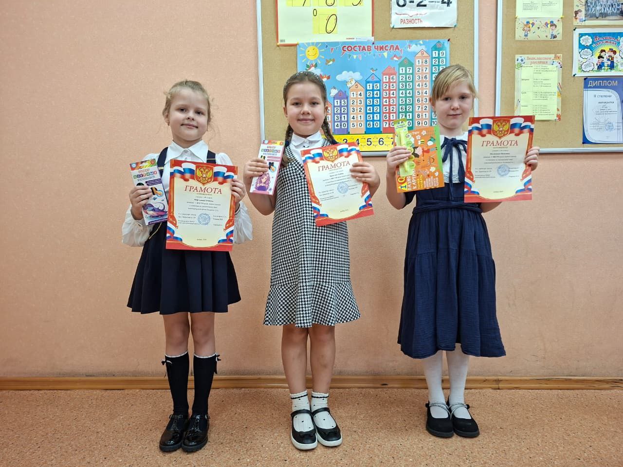 Участвовали в олимпиадах по математике и русскому языку среди четвёртых классов. По итогам недели ученики 4 «Б» класса получили 14 грамот.